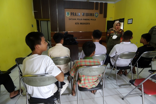 SEPULUH pelajar diamankan petugas Satpol PP Kota Mojokerto saat nongkrong dan main game di warung kopi (warkop) Kamis (23/2) pagi. Mereka kedapatan bolos sekolah saat petugas menggelar operasi dan patroli gabungan di jam aktif pelajaran. Operasi tersebut digelar dalam rangka penegakan ketertiban dan kedisiplinan di kalangan pelajar.