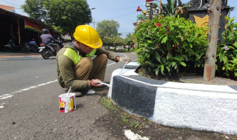 DINAS Lingkungan Hidup (DLH) Kota Mojokerto percantik fisik di beberapa taman. Tampak petugas sibuk memberi sentuhan warna di sekeliling taman.