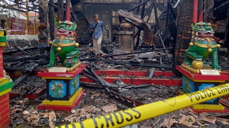 KEBAKARAN yang menghanguskan Kelenteng Hiap Thian Kiong, Desa Seduri, Kecamatan Mojosari, Kabupaten Mojokerto, Minggu (7/5) siang, diduga berasal dari lilin yang menyala. Kerugian akibat kebakaran ditaksir mencapai Rp 500 juta.