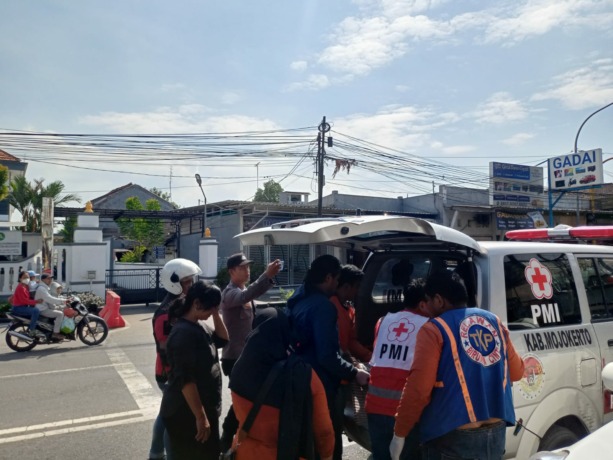 SEORANG pemilik bengkel tambal ban di Jalan RA Basuni, tepatnya depan kantor Kejaksaan Negeri (Kejari) Kabupaten Mojokerto, Desa Japan, Kecamatan Sooko, ditemukan meninggal, Minggu (11/6) siang. Korban tiba-tiba terjatuh saat mengisi angin ban mobil yang sedang ditambal.